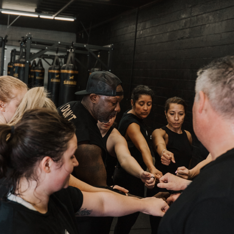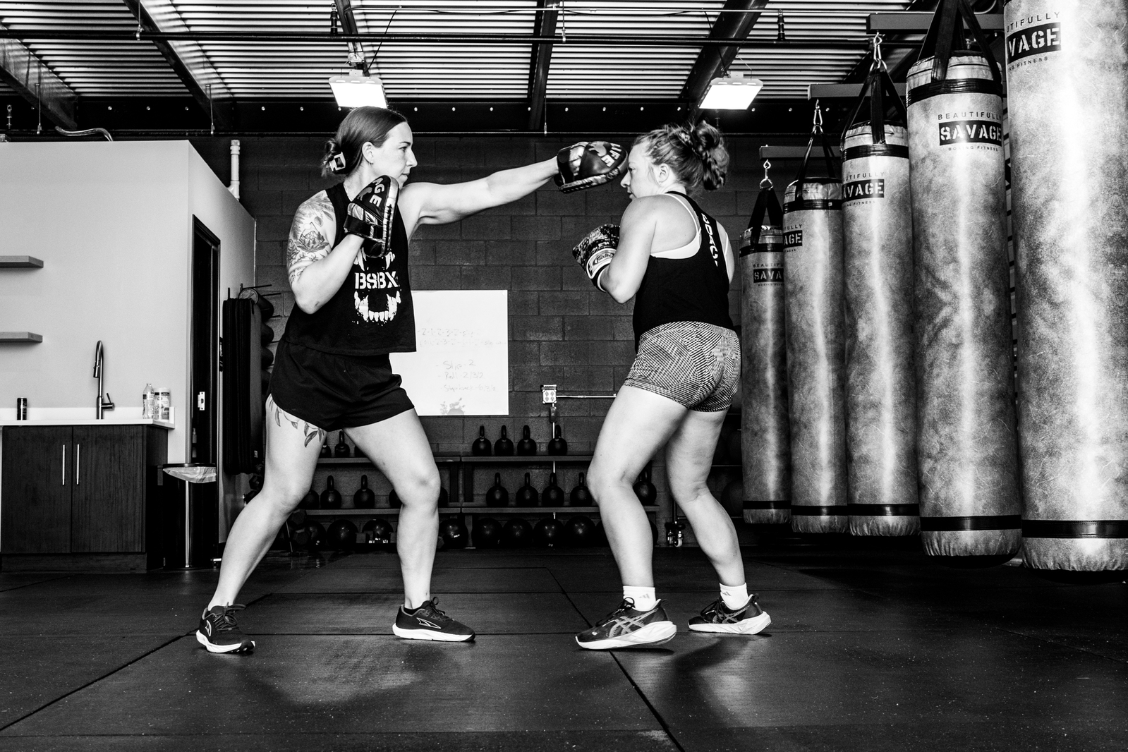 Our classes last 45 minutes and include 6 rounds of functional fitness exercises, 6 rounds on the punching bag, and 12 rounds of high-intensity interval training (HIIT). It's a fun and effective routine to help you push yourself and improve your fitness.