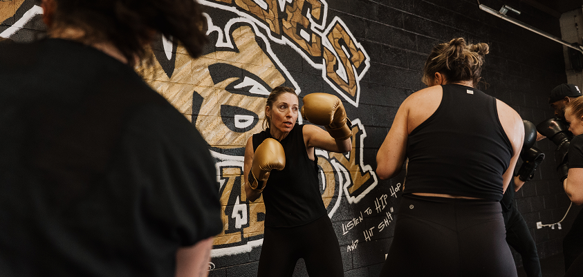 Throwdown blends real boxing and kickboxing technique with heavy bag rounds, jump rope, core work, and mitts. You’ll sharpen your hands, build your engine, and move with purpose to the beat of hip-hop and the pulse of the room.
